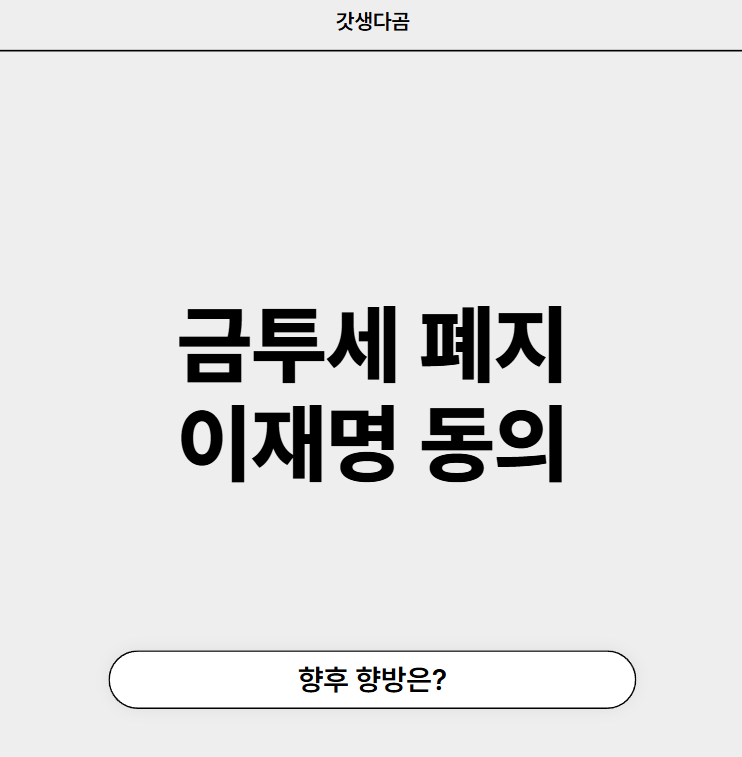 금투세 폐지, 이재명 동의! 향후 전망은?