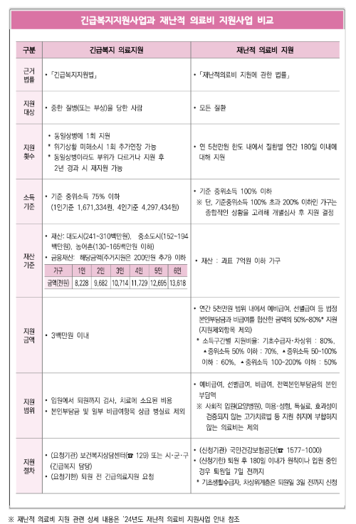 중대 질병, 긴급복지지원 제도 지원 내용 확인하세요